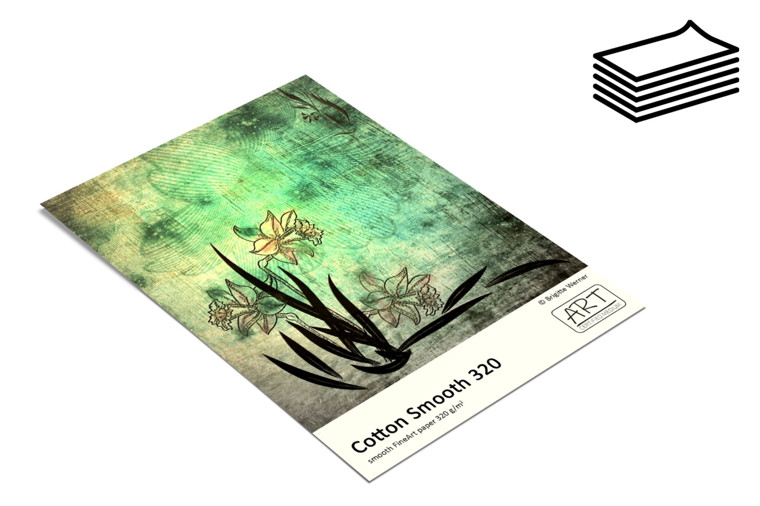 Hluboce matný, bělený FineArt papír ze 100% bavlny.